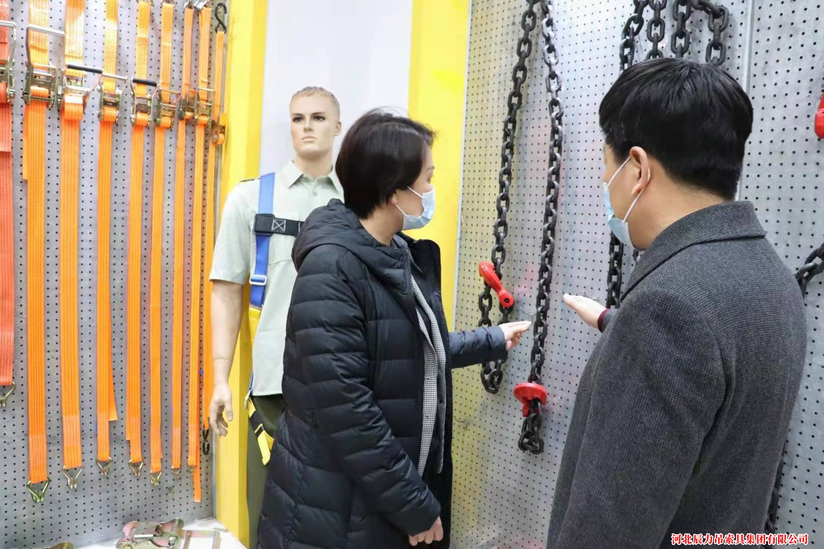 在產品展示廳里,劉丹區長聽取了蘇總經理對吊裝帶、起重鏈條、手拉葫蘆等產品的介紹后,對我公司實力、產品質量表示進一步肯定。同時詢問了公司在發展建設中存在的問題與困難,并對下一步發展建設提出了寶貴建議。